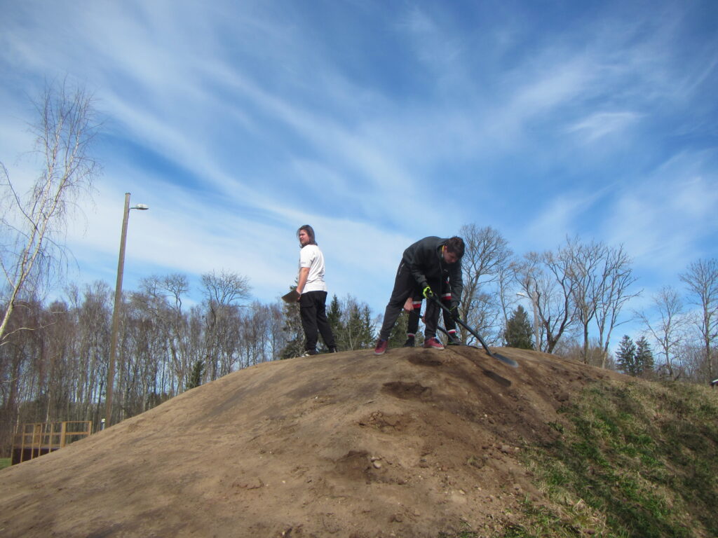 Ühel toredal tööpäeval tuli Henri Grünberg välja mõttega, kuidas võiks uuendada Suure-Jaani noortekeskuse juures olevat vana BMX rada. Hea idee langes väga viljakale pinnasele ja võttis paar päeva hiljem ootamatu pöörde, kui noorte palvel saabus noorteka õuele Acropolise ekskavaator. Selle eest eriti suur tänu Aivar Rahulaanele, kes ülimalt operatiivse tegutsemisega appi tuli. Oliver Tamme, Rasmus Põdra, Maiko Tõkke ja rajameister Henri Grünberg said raja uuendamisel teha kõik oma kavandatu järgi ja loodame, et rattarada saab seeläbi nüüd uue hingamise. Rada käisid juba esimesel õhtul testimas ka sportlikud emad, kes andsid poiste tööle kiitva hinnangu. Hetkel on veel rada kinni, sest poisid peavad veel kõvasti käsitsi tööd tegema, et uus atraktsioon saaks lõpliku viimistluse. Suurim tänu Suure-Jaani staadioni ehitusfirmale Ameron, kes meid materjaliga varustas ja veel suurem tänu ekskavaatorit juhtinud Marekile! Tore, et saime noorte indu ja ettevõtmist toetada! Koolivaheaeg algas suurepäraselt ja need neli poissi võivad nüüd küll uhkusega öelda – ise tehtud, hästi tehtud! Hästi tehtud, poisid!